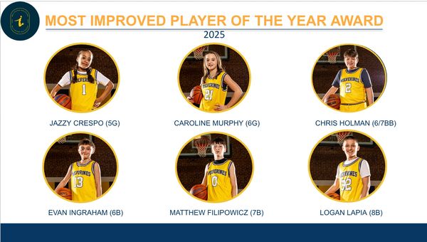 Improvement is an endeavor that our best players embrace. This award recognizes the love of the game and the way it carries through to practice habits, commitment to craft, and demanding excellence of ones self. This years winners are on the left: Jazzy Crespo (5G), Caroline Murphy (6G), Chris Holman (6/7BB), Evan Ingraham (6B), Matthew Filipowicz (7B), and Logan LaPia (8B).