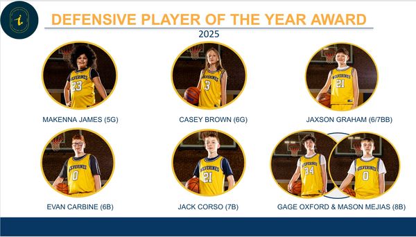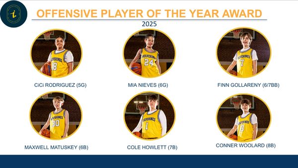 Defense is the cornerstone of ANY successful team. Those that commit to defense seem to find their way towards maximum playing time and big impact. Whether it's stopping the opponents top scorer(s), dominating the defensive glass, or protecting the rim, the DPOY is a jewel in the crown. This years winners from each team are: Makenna James (5G), Casey Brown (6G), Jaxson Graham (6/7BB), Evan Carbine (6B), Jack Corso (6B), and Co-DPOYs for (8B) are Gage Oxford and Mason Mejias.