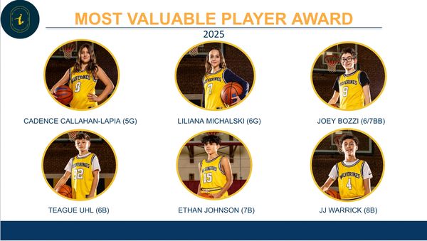 The Most Valuable Player is a person who does it all to support the mission of TEAM success. This person has a well-rounded game that is impactful on both sides of the floor and they can be counted upon to play their biggest in the biggest moments of a contest. The winners for each team are: Cadence Callahan-LaPia (5G), Liliana Michalski (6G), Joey Bozzi (6/7BB), Teague Uhl (6B), Ethan Johnson (7B), and JJ Warrick (8B).
