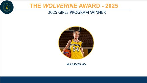 Mia Nieves is a dynamic scorer who pushes the Lady Wolverines program forward. In addition to her skills, Mia is the ideal teammate. She is supportive of others, selfless in her approach, and puts team success ahead of her own. This season, Mia was the leading scorer for her team and in the girls program and capped off the season with a 16 point 8 rebound effort in the playoffs. Additionally, she gives 110% on both sides of the floor as evidenced by her 2024 Defensive Player of the Year selection. For these reasons, and many others, Mia is our 2025 Wolverine Award Recipient.
